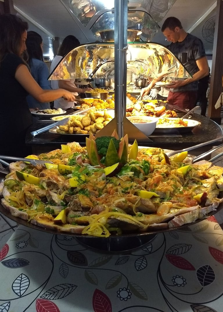 Em nosso estabelecimento, destacamo-nos por oferecer um buffet livre que abraça a riqueza da culinária local. Desde pratos tradicionais até opções contemporâneas, nosso cardápio diversificado é preparado com ingredientes frescos e selecionados. Venha saborear o melhor da gastronomia conosco, a poucos passos da areia e do mar de Canasvieiras!